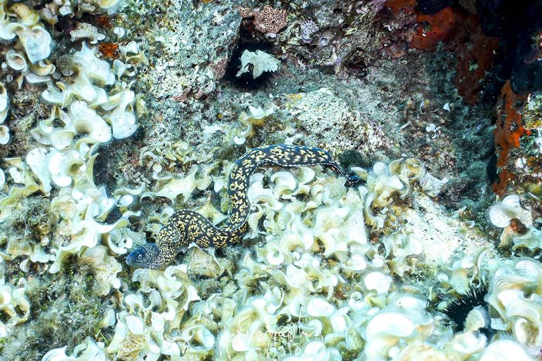 Underwater, we had good visibility and the dive sites we went to were interesting.